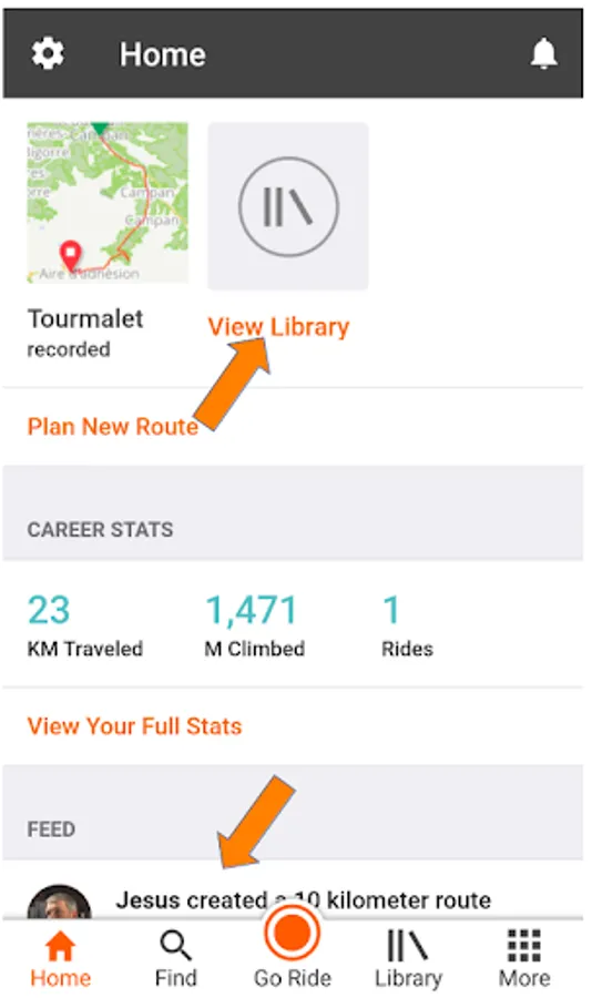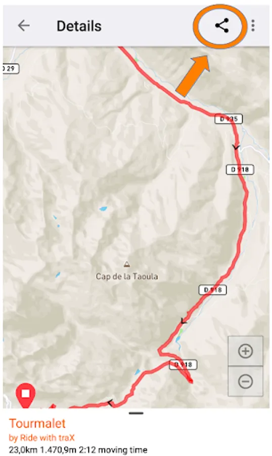 - Download a GPX file (track) from a Ride with GPS trip or route using the share button.
