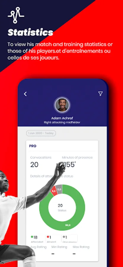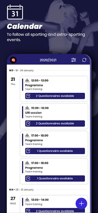 This application allows the athlete to fill in the different wellness questionnaires based on a scientifically recognized method: RPE (Rate of Perceived Exertion). The information collected is directly recovered to the staff, allowing them to monitor the athletic evolution of individuals and adapt the workload to optimize performances.