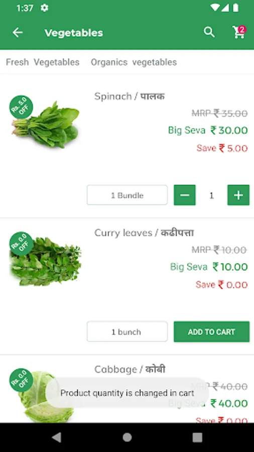 Big Seva is platform which integrating sellers with buyers of fresh fruits and vegetables. The Big Seva app will help you to order vegetables from seller near you. At Big Seva we are delivering fresh vegetables in Pune with a strong base to fulfill ever increasing need of vegetable for rapidly growing population of Pune city. Our sellers source fresh vegetables from farmers and deliver them to customers; we offer services to Peoples, Restaurants, Food Processors, and Canteens etc.