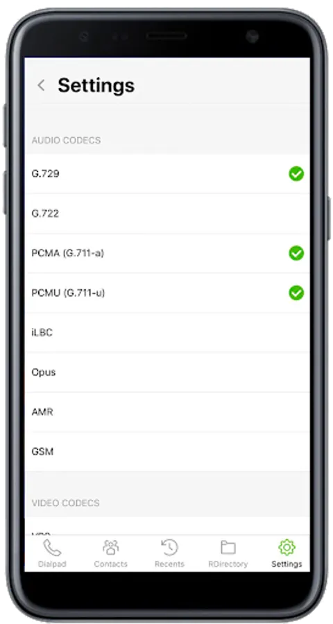 - Audio Codecs: G.711 aLaw/uLaw, iLBC, GSM, G.722.1, G.722, AMR,AMR-WB, SPEEX, SPEEX-WB