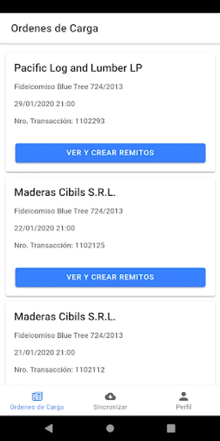 The application allows you to fill in the data of a typical load for the industry. It also allows you to take relevant photos and is integrated with the ERP to ensure the integrity of the information that travels between the parties.