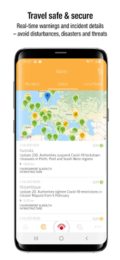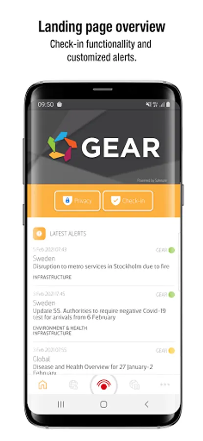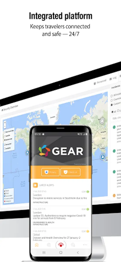 GEAR Tech is a powerful mobile solution that assists travellers by providing real-time status warnings, alerts, country security, travel and medical information. It allows for push and SMS alerts to help you navigate potential danger, such as extreme weather warnings, political and civil unrest, and terrorism threats. If you are under threat, simply activate the emergency button to communicate with the SPS Global Response Centre who are on hand to assist members.