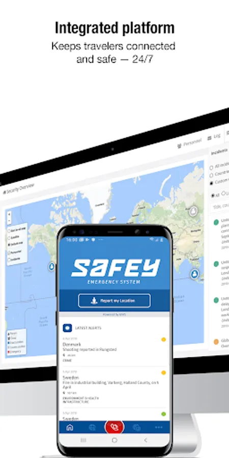 Safey is a personal safety and early travel warning solution that provides real-time status on warnings, alerts, security information and travel plans. It integrates two security tools: the Safey and the Safey Instant Security Overview (ISO) web portal.