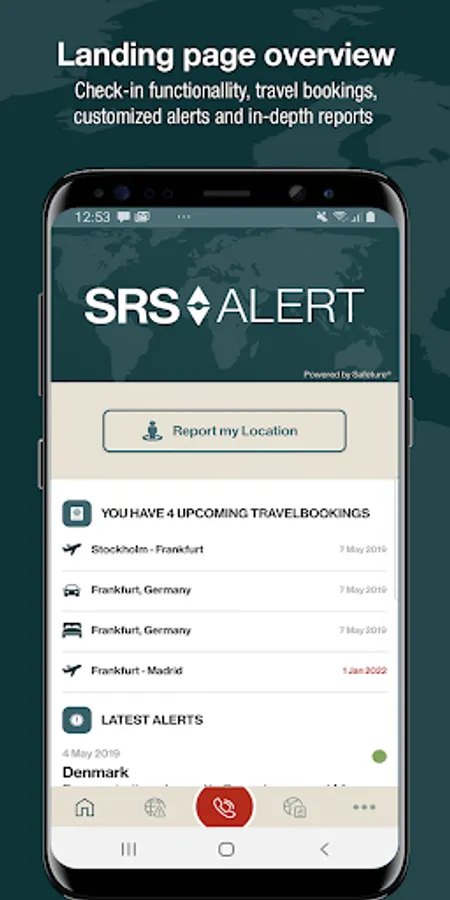 SRS ALERT 2.0 adapts to your language and makes it easy to share your location and alerts. It helps you to be better prepared for the destination you are travelling to, the risks and how to avoid them.