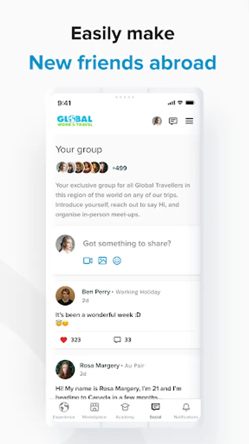 Once registered, our revolutionary gWorld platform allows you to meet your trip coordinators, manage your profile, build your resume/CV before you go, learn a new skill or language, access our exclusive Marketplace to save thousands from over 100 partner brands, and holds all your important docs from flight tickets to travel insurance policies.
