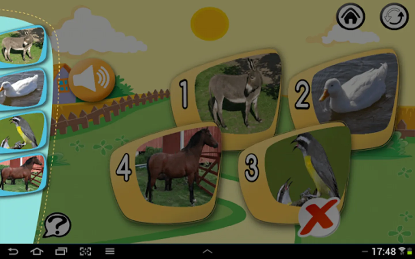 Scenarios and very flashy and entertaining photographs, the child should hear the sound and click the image associated to the sound. By associating the sound to image correctly the level is completed.
