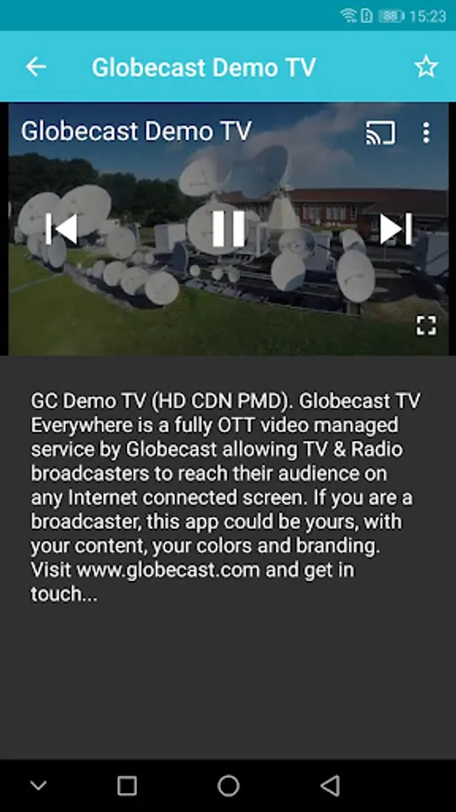 Globecast TV Everywhere is a fully OTT video managed service by Globecast allowing TV & Radio broadcasters to reach their audience on any Internet connected screen. If you are a broadcaster, this app could be yours, with your content, your colors and branding. Visit www.globecast.com and get in touch…