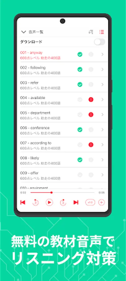 Full of features you'll want when preparing for listening, such as double-speed playback, filtering functions, and section repeat functions!