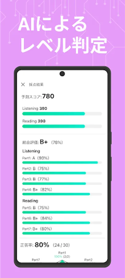 Based on the learning data of over 3 million abceed users, your TOEIC score/vocabulary level is calculated in real time just by solving questions.