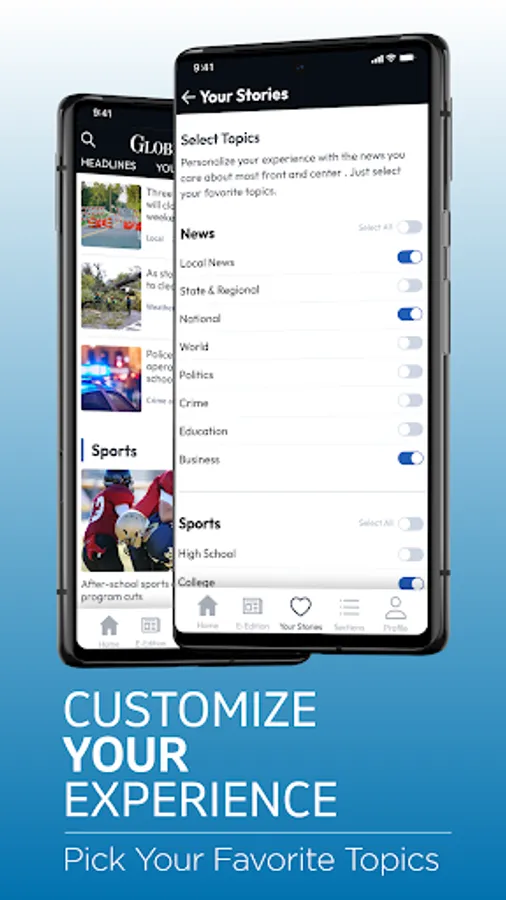* Your Stories – personalize your experience by selecting the local news topics that matter most to you