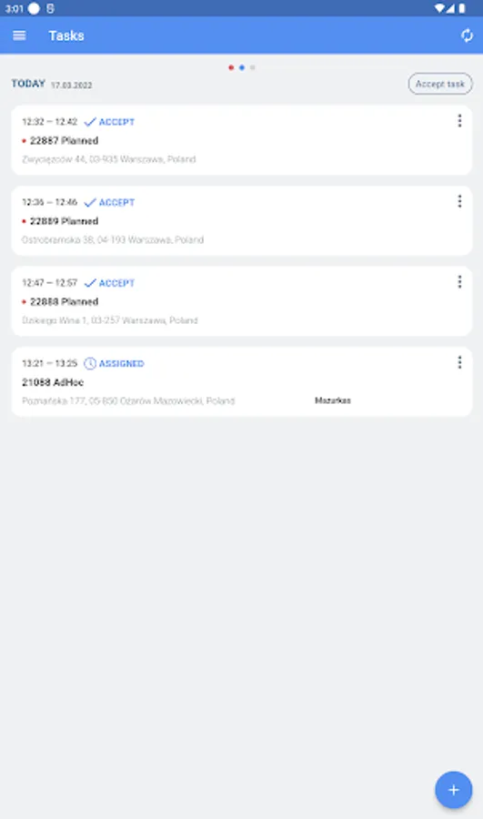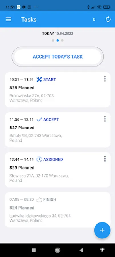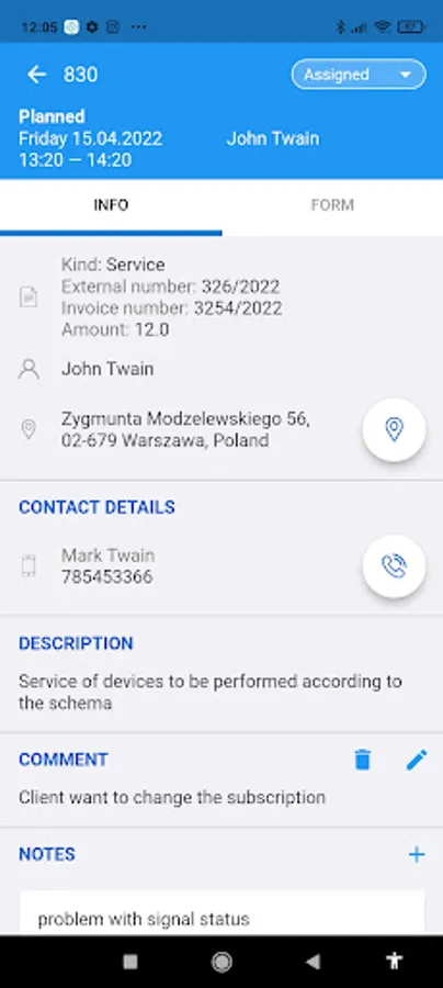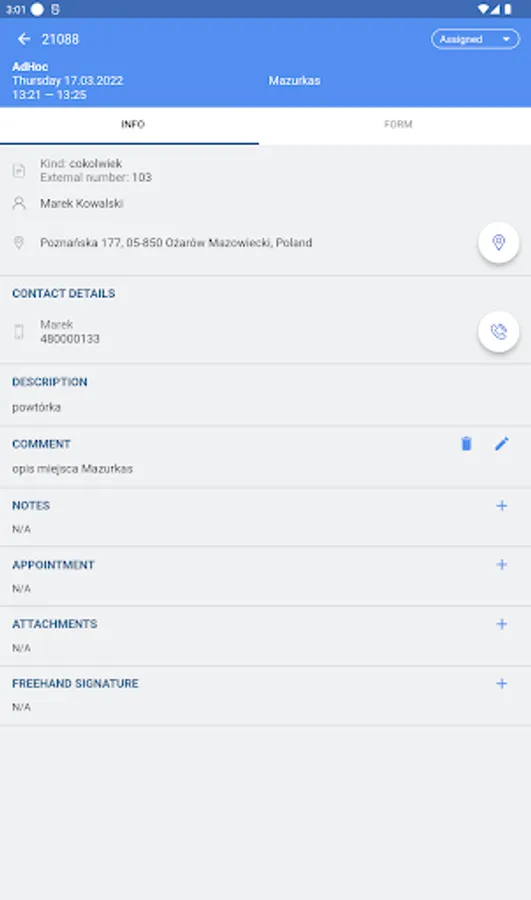With GeoTask's mobile app, field workers have access to an up-to-date task list. Each task provides information describing the work that has to be done. Updating the task status in the field is immediately visible to the dispatcher. A technician can fill out the form, add comments, notes and make photographic documentation.
