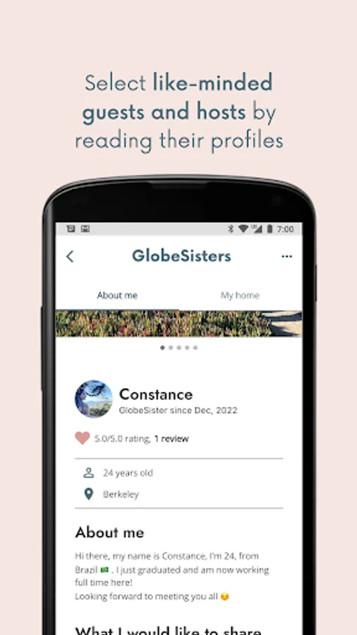 GlobeSisters is a hospitality exchange platform tailored for women. Our app connects women travelers with local hosts in the area where they are traveling. The GlobeSisters community is 100% composed of ID-checked women. Our mission is to empower women to travel by providing them with trusted accommodation solutions.