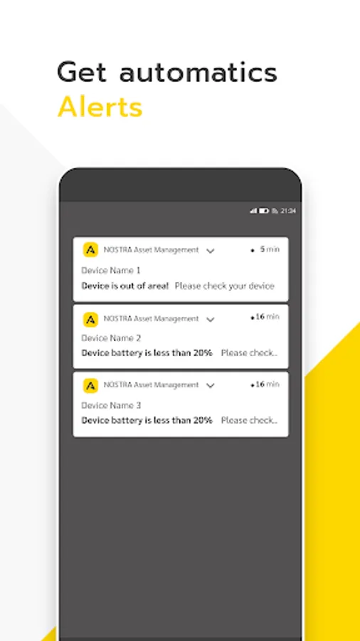 Get an automatic alert when the device in charge has abnormalities such as low battery level or assets move outside the geofencing area.