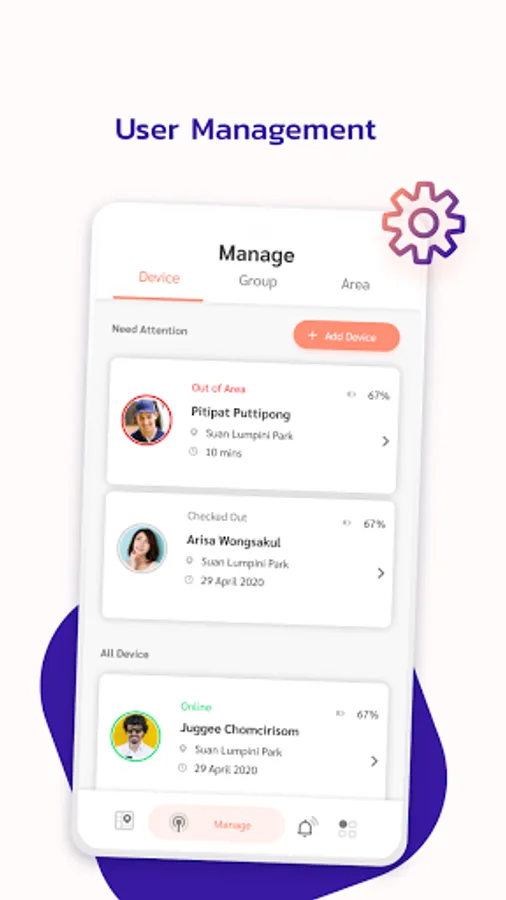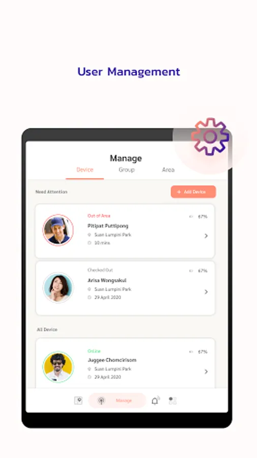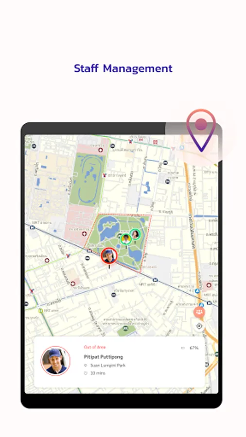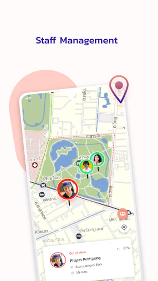 The supervisor whose in charge of the team will be able to see locations of all employees in detail on a real-time and high-accurate map.