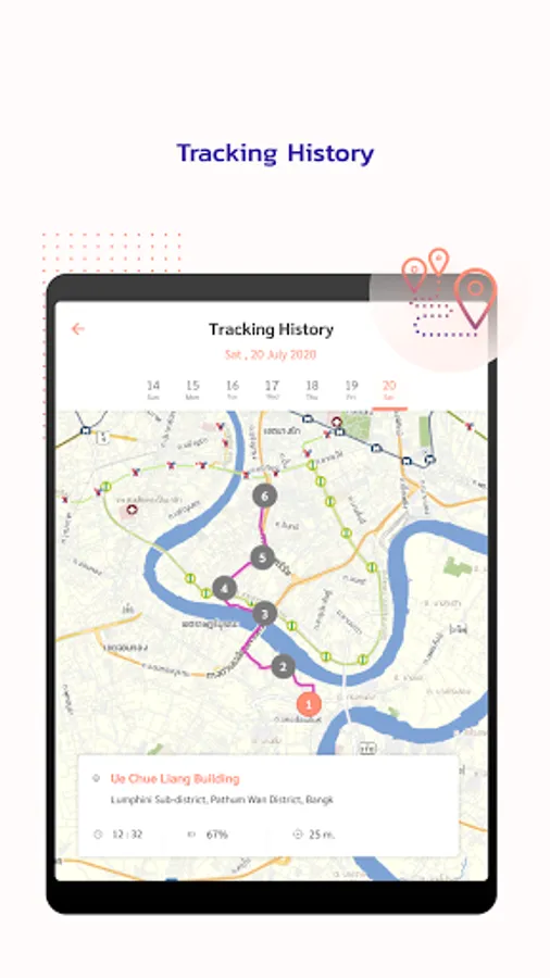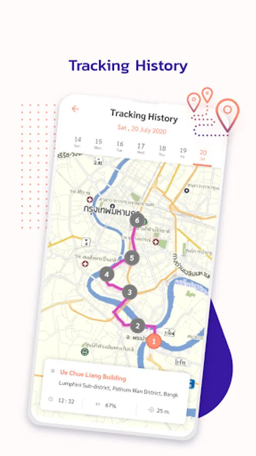 Supervisors or HR can check the location and details of individual users, teams, and up to 30 days of route history on the map.