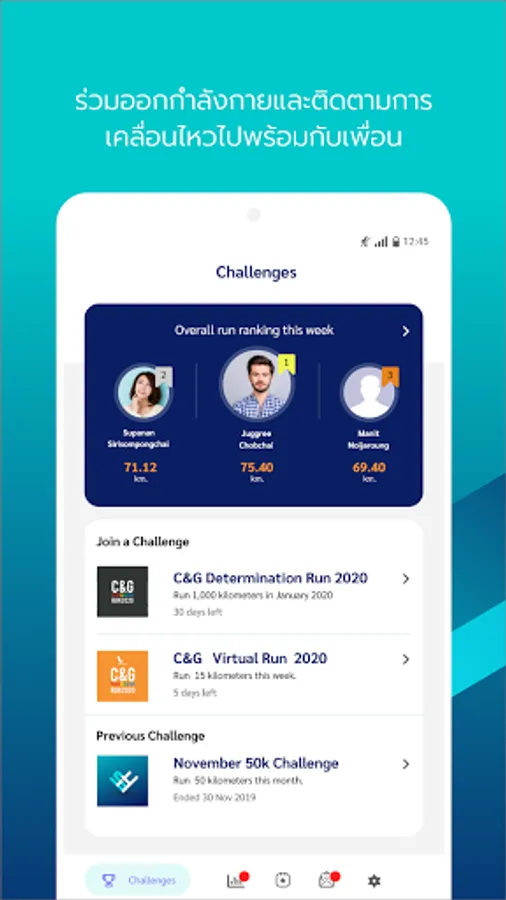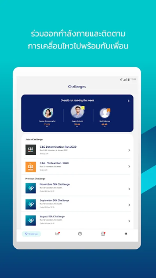 • Show challenge Detail, status, history and ranking by overall and separate by team.