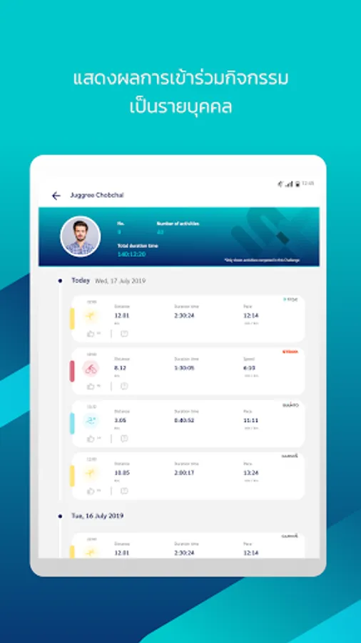 • Show running practice detail, Click to join and display history and ranking by overall and separate by team.
