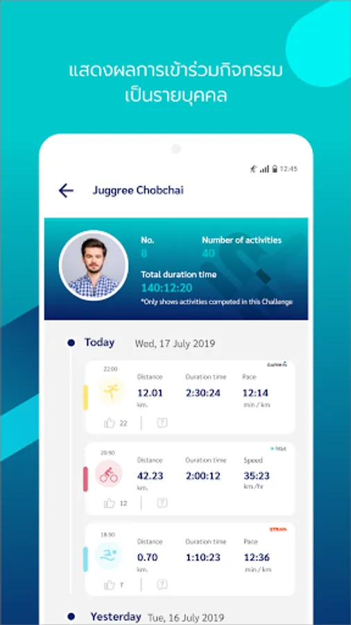 • Show Race Result, Distance, Steps and Calories by leader board for top 100 data accumulated.