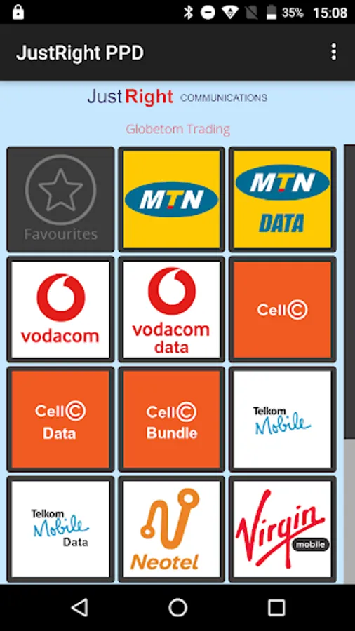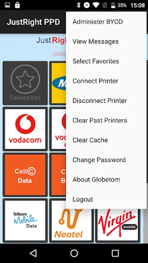 JustRight Prepaid Distribution POS application used by registered merchants and retail outlets to transact through the Globetom Revenue Weaver Cloud Platform and print vouchers using mini thermal Bluetooth printers.
