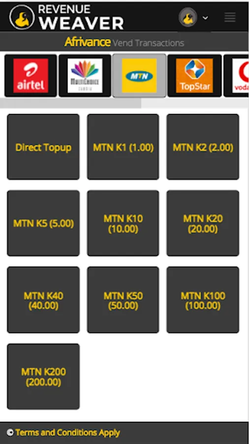 Globetom Revenue Weaver Prepaid Distribution POS application used by registered merchants and retail outlets to transact through the Globetom Revenue Weaver Cloud Platform and print vouchers using mini thermal bluetooth printers.