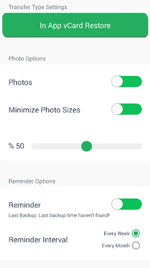 * Easy restore. No need to any app to restore backup file. Just tap on the *.vcf backup file in the Android or iPhone mail client.