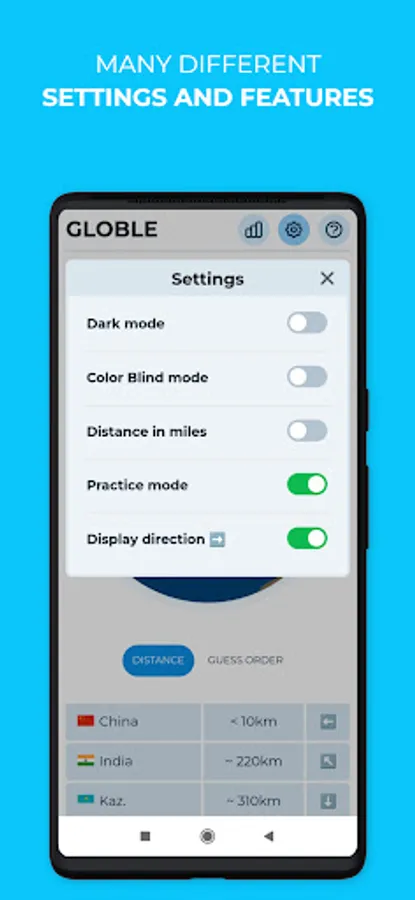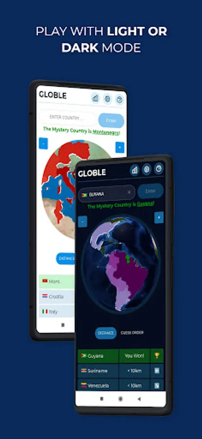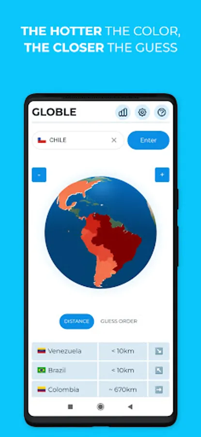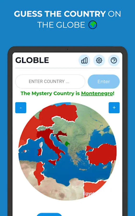 Globle will test your knowledge of geography. The goal of the game is to find the mystery country on the world map. After each guess, you will see on the map the country you have chosen and the hotter the color, the closer you are to the hidden country. You have an unlimited number of guesses, so use the color hints and find the target country as soon as possible.
