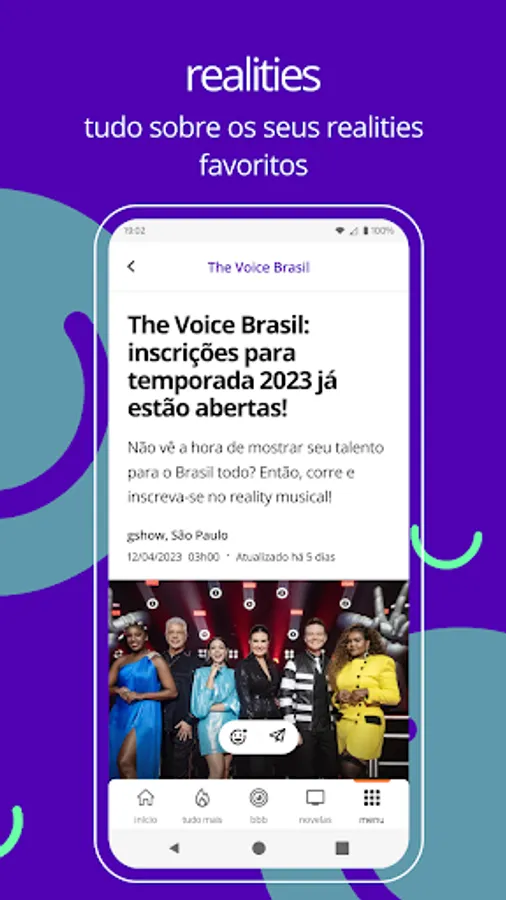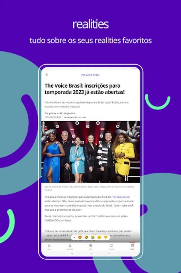 Everything about your favorite realities: Big Brother Brasil (BBB), The Voice, No Limite, The Masked Singer Brasil and much more.