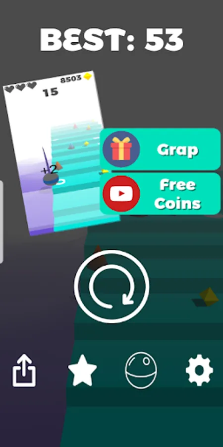 Stairway to Paradise is an exciting endless bouncing game in which you touch the screen and move your finger to control the ball bouncing on the stairs. Try not to fall off the edge or hit the thorns standing on your way. Collects coin to unlock new balls and stairs's type, get magnet to attracts all coins, get heart to boost up your life and go as far as you can