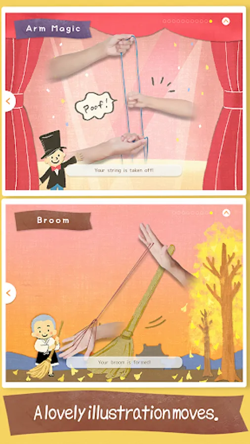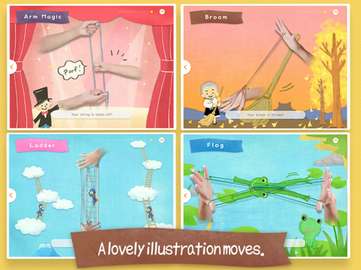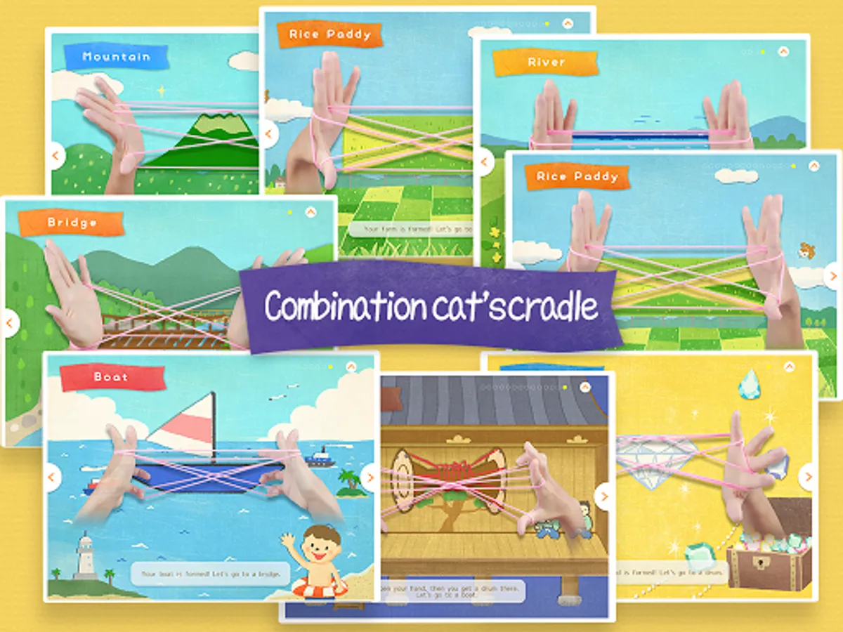 Cat's Cradle for Kids is a series of string figures that is various patterns and shape played by your fingers and hands. Since this application use pictures to imagine the various scenes, especially children feel fun to play. Changing the common strings has the potential to enhance children's imagination and curiosity.