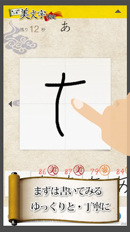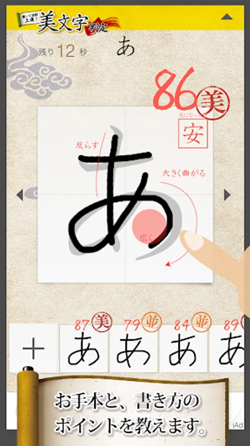 "Bimoji Judgment" is an application that allows you to train to write beautiful characters even in the present age when it is difficult to write characters by hand.