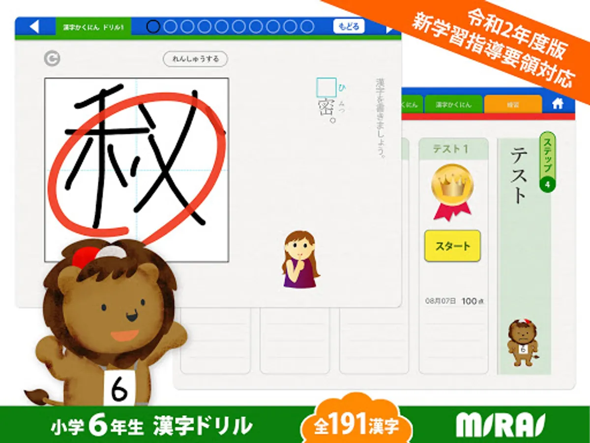 Since its launch in 2011, the "Elementary School Kanji Drill" series is a long-selling app that has been used not only by individual users but also by schools and cram schools. This app series supports all 1026 characters that elementary school students learn in 6 years.