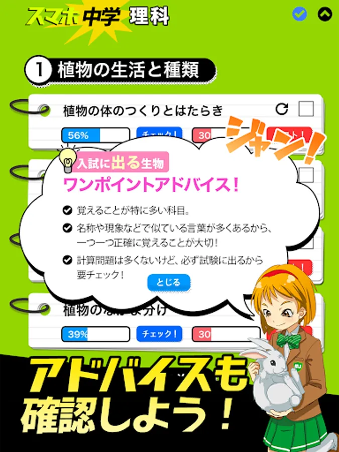 A detailed explanation will be attached to each problem. Also, if you make a mistake once, it will be saved in the "Not good list" on the home screen. You can efficiently learn what you are not good at as many times as you like, so it is recommended for learning in your spare time.