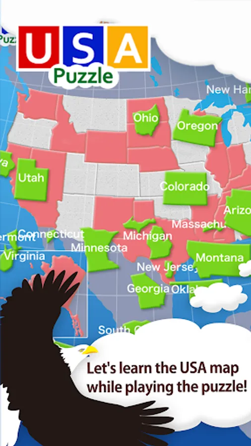 Let’s complete the USA map, shifting each piece correctly with your finger.