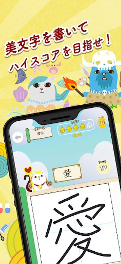Depending on the score of the written character, "Beauty", "Good", "Medium", and "Sorry" will be evaluated, and you will receive 3 scrolls for "Beauty", 2 for "Good", and 1 scroll for "Medium". .. If you collect 10 scrolls, you can get items and level up! At first, I don't have anything, but as the level goes up, I decorate it with items and transform it into a gorgeous one. Complete the stage when you reach level 10!