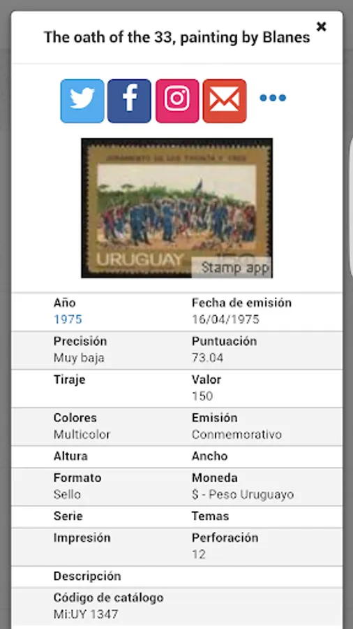 all data of the stamps sold in Uruguay since the first sollo that until now sold are included.