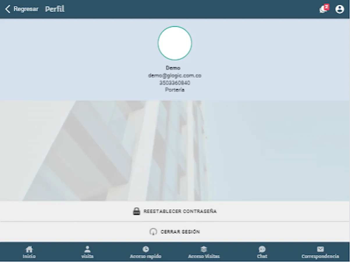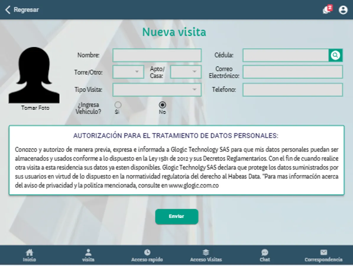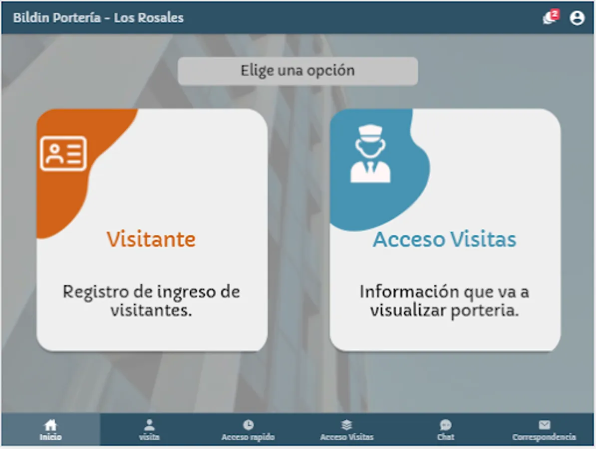 Allows the goalkeeper user to communicate with the resident and administration. It also allows you to create quick access to visits and view the history of visits.