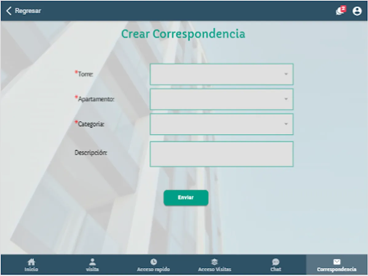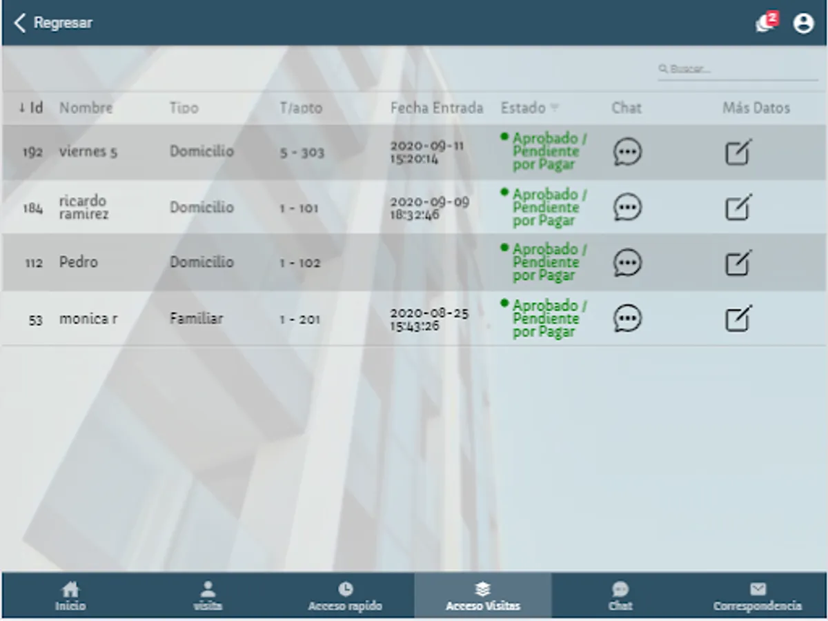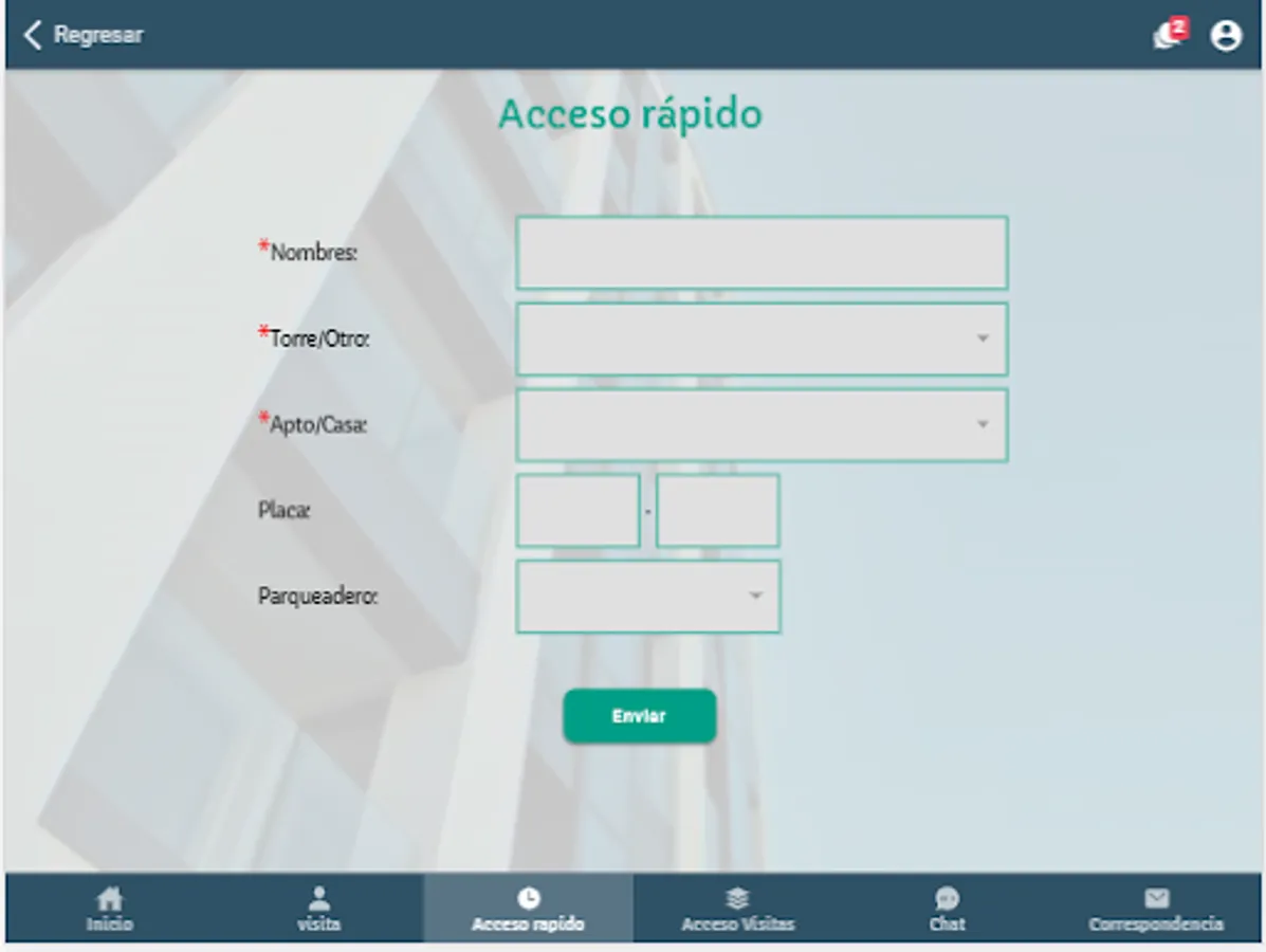 Allows the goalkeeper user to communicate with the resident and administration. It also allows you to create quick access to visits and view the history of visits.