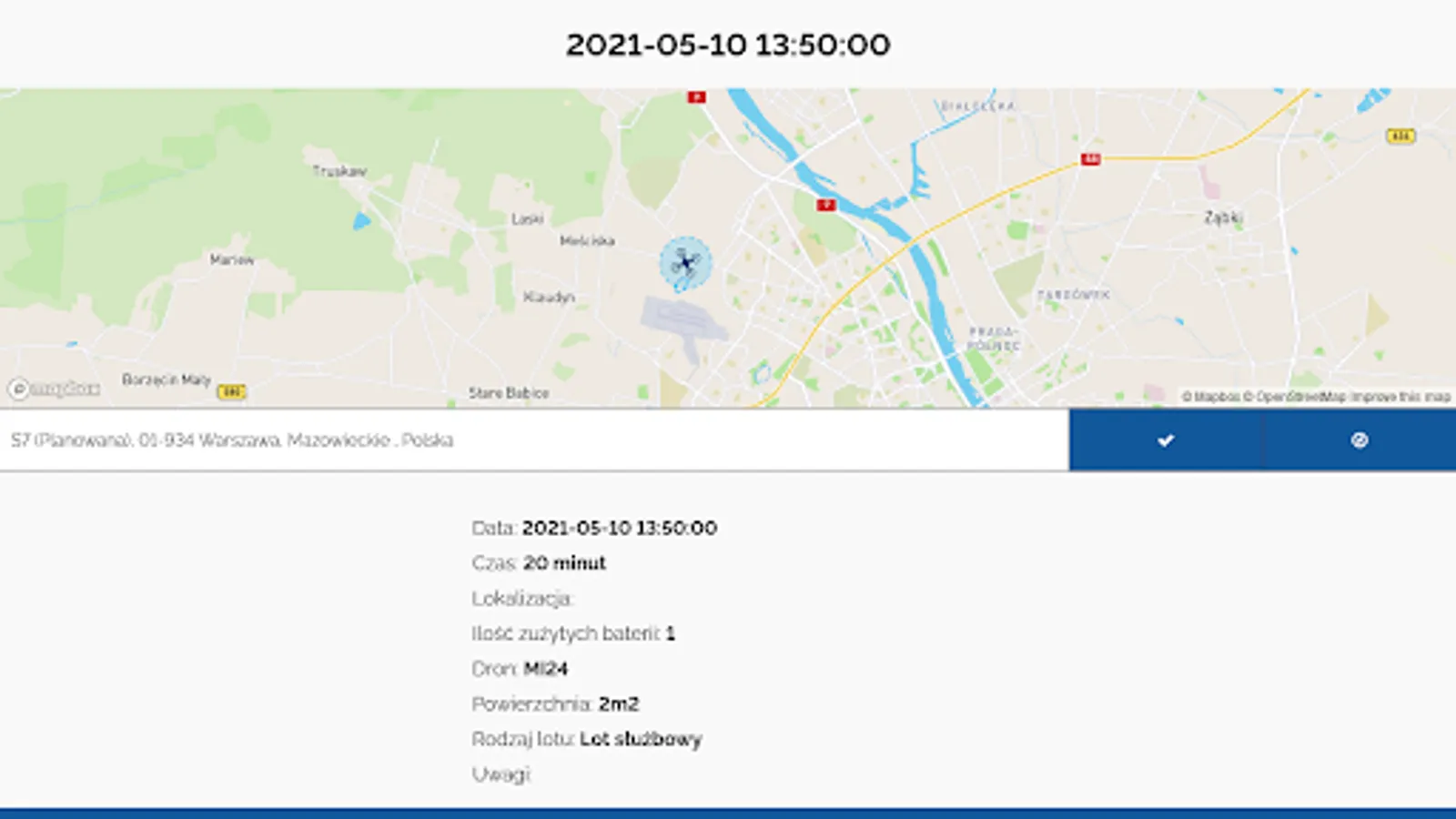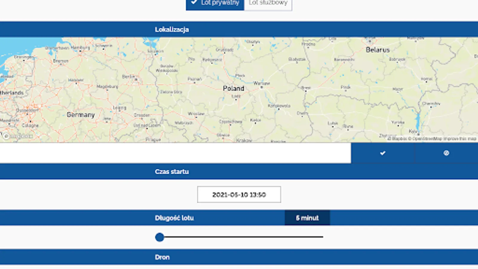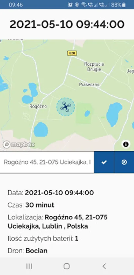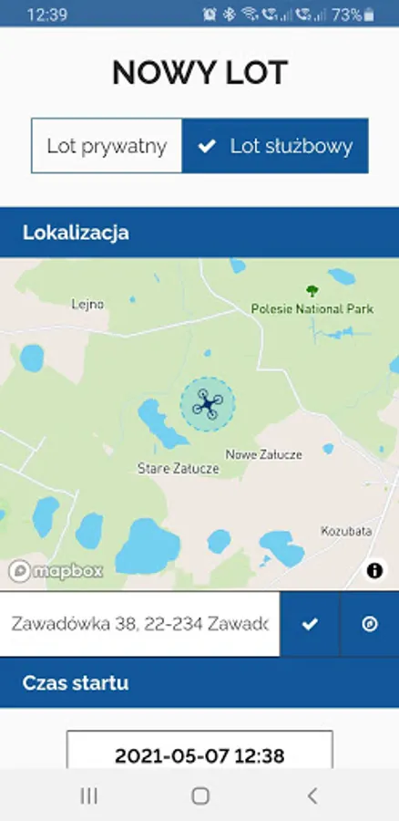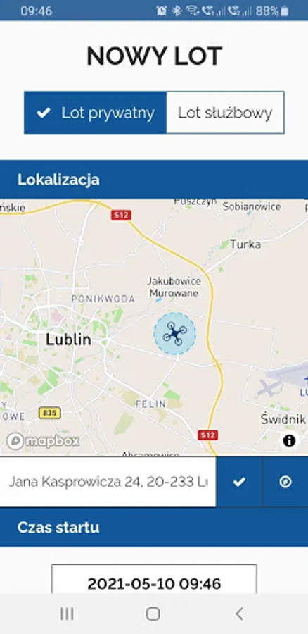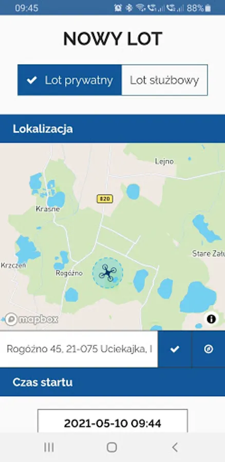When starting a new flight, your location is set based on the phone's GPS indications, but you can also correct it by dragging the drone icon on the map.