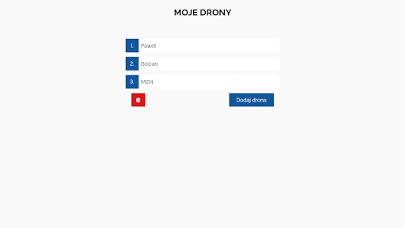 Select the drone you will fly with from your list.