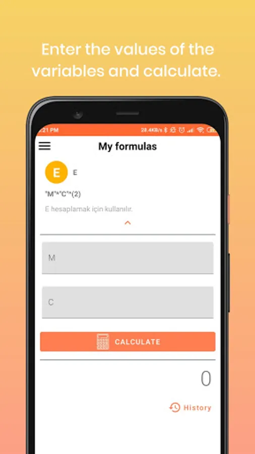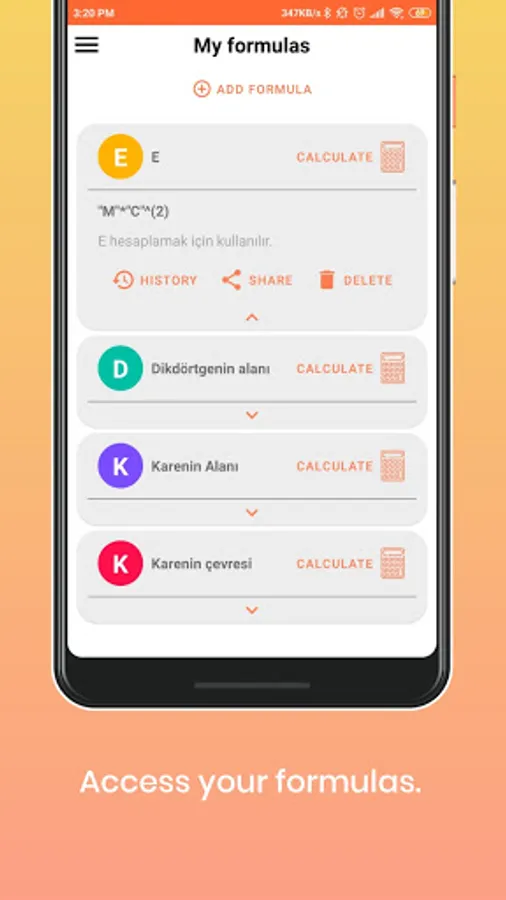 Formula Book application is a calculation application that contains functions in scientific calculators. With this application, formulas are created and calculations are made easily by entering only the changed values without repeating the process. It is aimed to prevent data loss by keeping the created formulas and calculated results on remote servers.