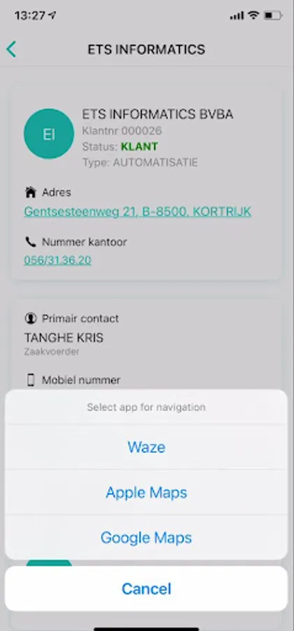 With this module, customer data and contact details (name, address, telephone number, email) can be consulted. From here you can easily start the route planner to the customer address, create a new email or start a telephone conversation.