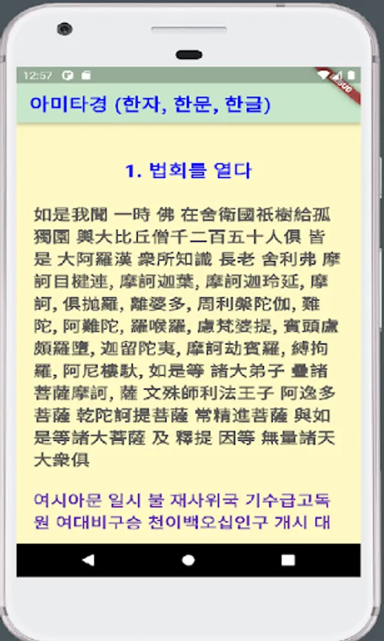 The Amitabha Sutra is one of the Three Sutras of the Pure Land, and it is a sutra that records Amitabha's merits and deeds of happiness. It includes three versions: Chinese characters, Korean characters, and Hangeul.