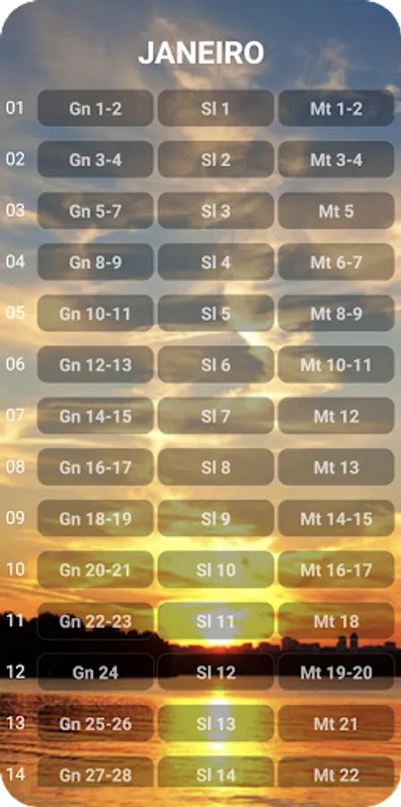 - Reading Plans: Complete Bible in 1 year, Old Testament in 3 months, New Testament in 3 months, Psalms, Gospels, Easter, Great Miracles of the Bible, etc;