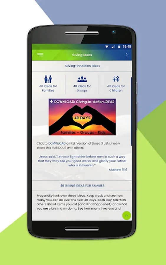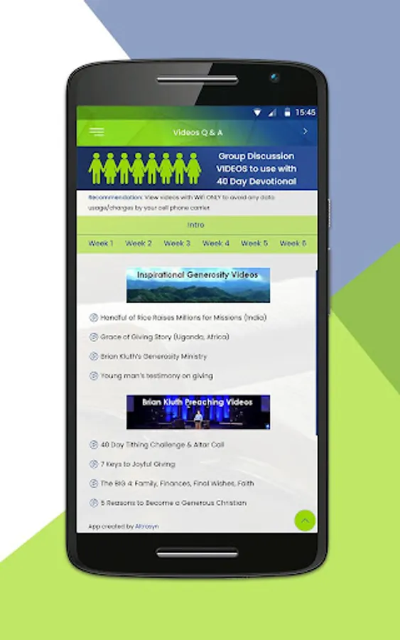 Based on the world's bestselling 40 Day Generous Life Bible devotional. 40 Daily Bible readings with key Biblical financial principles, 10 Bible verses, teaching podcasts, generosity story, and cartoon. Weekly videos and discussion questions for small groups and classes. 40 Giving-In-Action ideas for children, families, and groups. WISE GIVING Q&A videos, inspirational videos, and teaching videos. Great for personal use, couples, families, small groups and classes, or churchwide use. Author of this app is Brian Kluth.