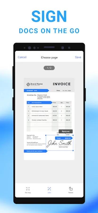 - Sign your scans manually or add signatures for the document.