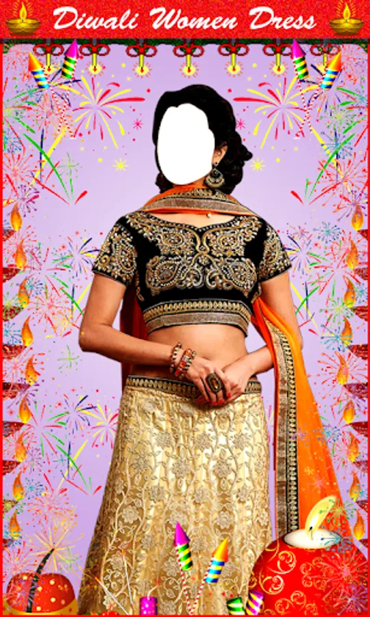 Thus Download the app called "Diwali Women Dress Suit New" and use it for free.To use this app is also very simple just select any picture which you want to frame and then select a beautiful Diwali Women Dress Suit New and set it using zoom and rotate button and save it.Thus share this with your loved once on whats app,Face book,twitter, Instagram.