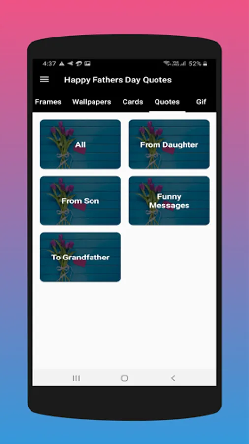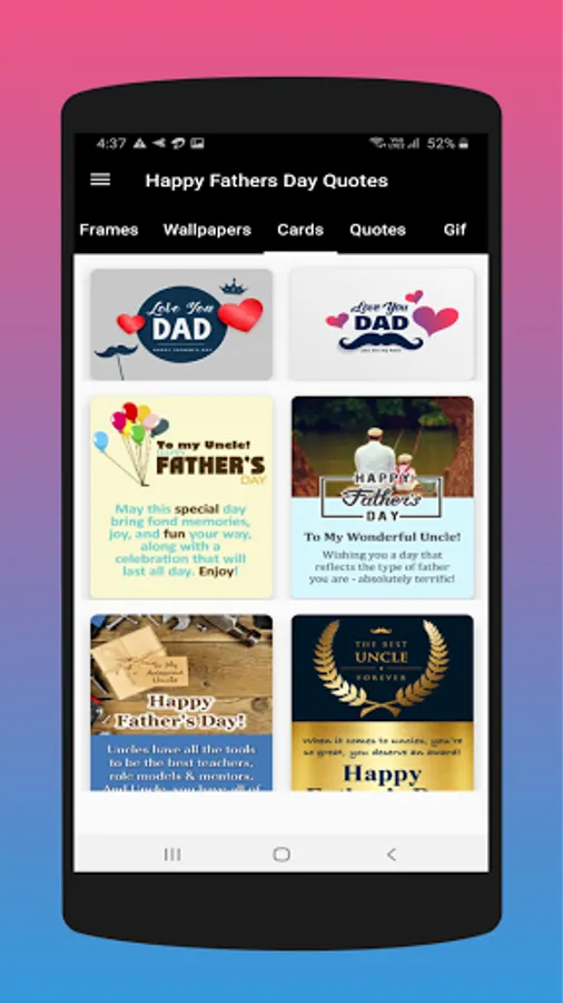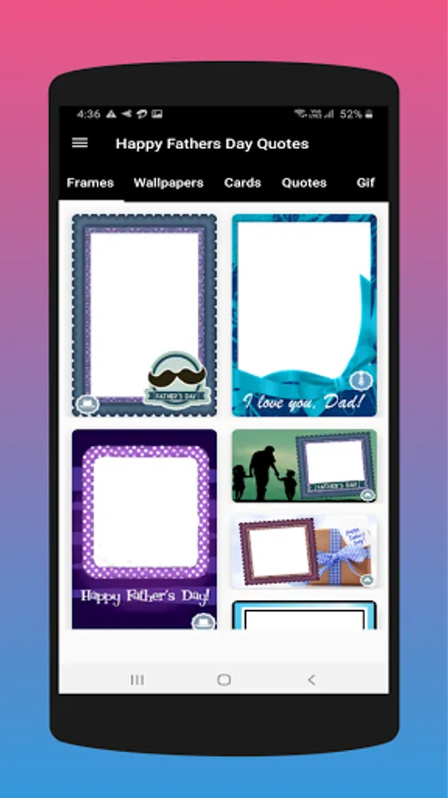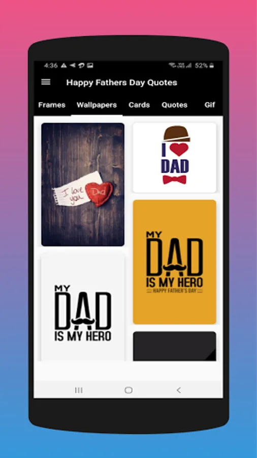 You can download Happy Fathers day Quotes Images and wallpaper and make your own Fathers day frames from this application and share it with your friends, family, and social sites.