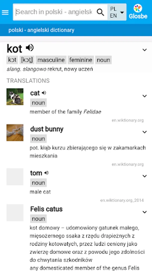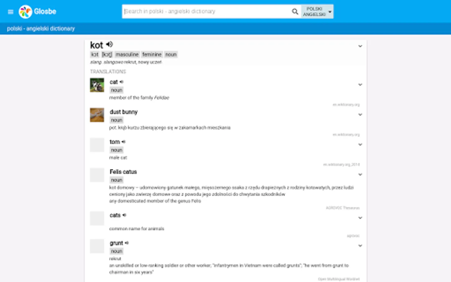 Glosbe will give you not only translations, but also thousands of examples, pronunciations and images to help you to find a correct translation.