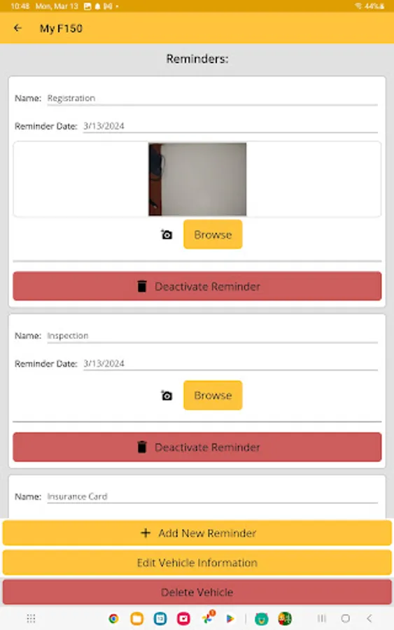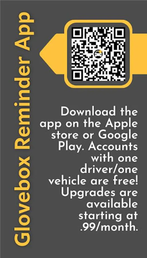 Introducing the ultimate solution for managing your vehicle and driver documentation. Our app allows you to input your vehicle information and set reminders for when your registration or inspection is due, ensuring timely renewals and avoiding any potential fines or penalties. You can also add driver reminders like license, DOT, and more. Say goodbye to worrying about keeping track of important vehicle documents and hello to peace of mind with our innovative app!