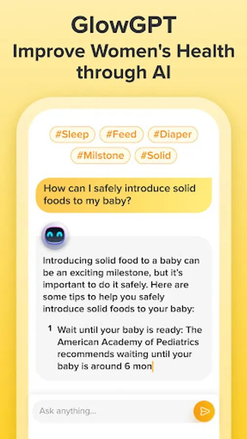✔️ AI-Powered Tracker: Glow Baby utilizes advanced AI technology to offer personalized insights and predictions. As you continue to use the app, it learns from your input, providing tailored advice to support you and your baby's unique needs.